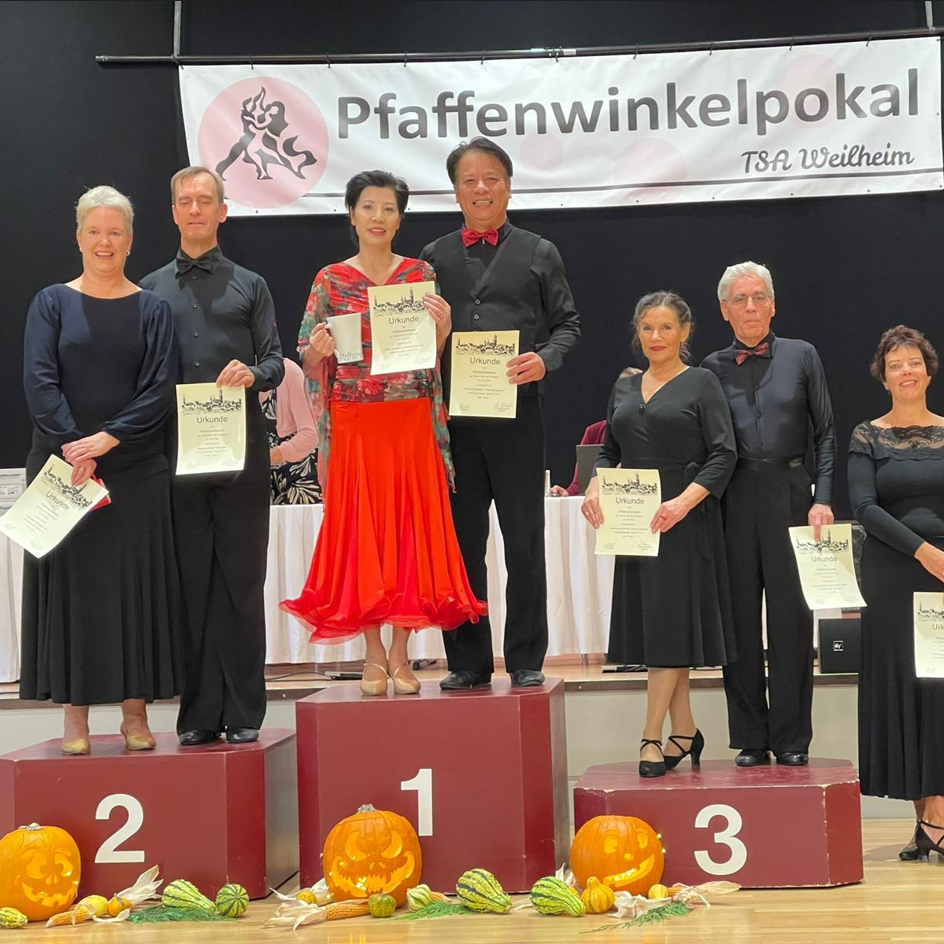 Bei den Turnieren um den Pfaffenwinkelpokal 2025 der TSA Weilheim am 18. Oktober erreichten die Tänzer des VfR Garching zwei Plätze auf dem Siegerpodest in der Klasse Master III D Standard. Den ersten Platz ertanzten sich Thi Thu und Thanh Ha Nguyen. Auf dem dritten Platz landeten Susanne und Claus Lindenblatt. Wir gratulieren ganz herzlich und wünschen weiterhin viel Erfolg!